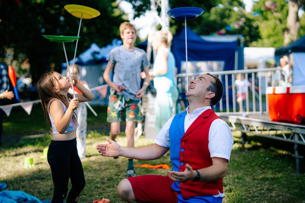 Both children and adults will love having a go at circus skills including juggling, diabolo, plate spinning, ribbon twirling and much more.